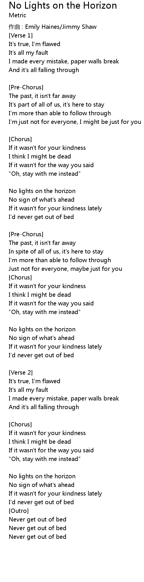 | 作曲 : Emily Haines/Jimmy Shaw | |