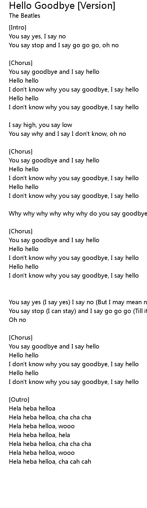 I don't know why you say goodbye, I say hello |