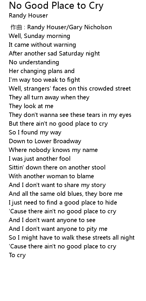 | [02:32.53] | 'Cause there ain't no good place to cry |