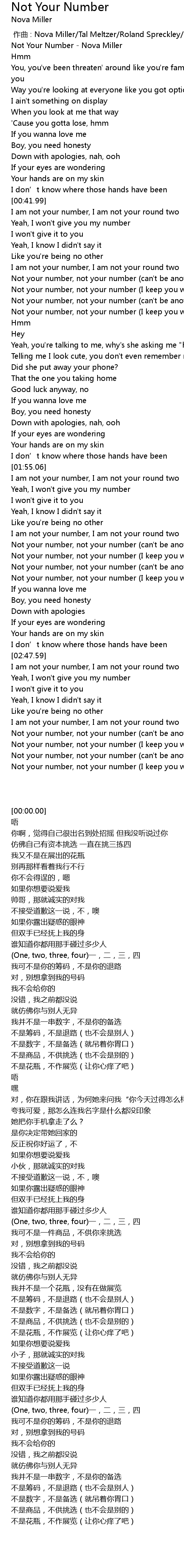 | [00:00.00] | Not Your Number Nova Miller |