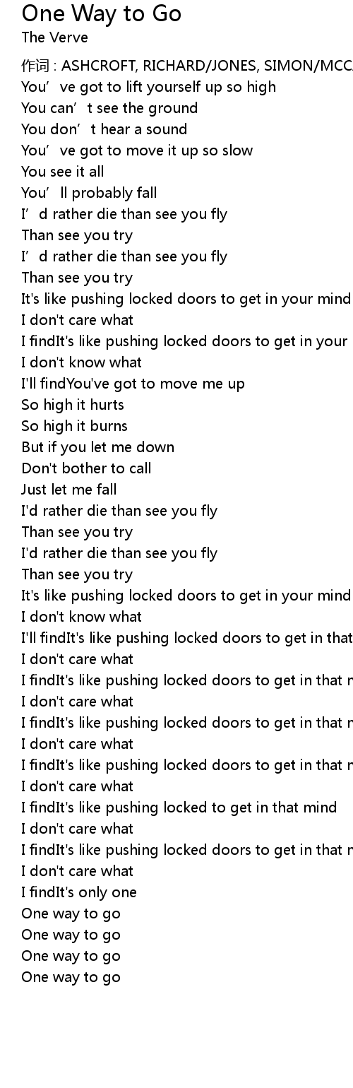 | 作词 : ASHCROFT, RICHARD/JONES, SIMON/MCCABE, NICK/SALISBURY, PETER | |