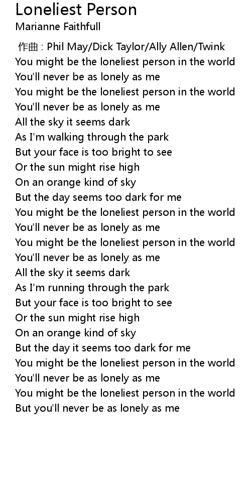 | [01:12.87] | You might be the loneliest person in the world |