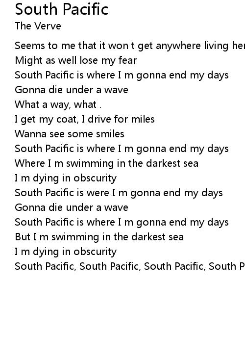 | South Pacific is were I m gonna end my days | |