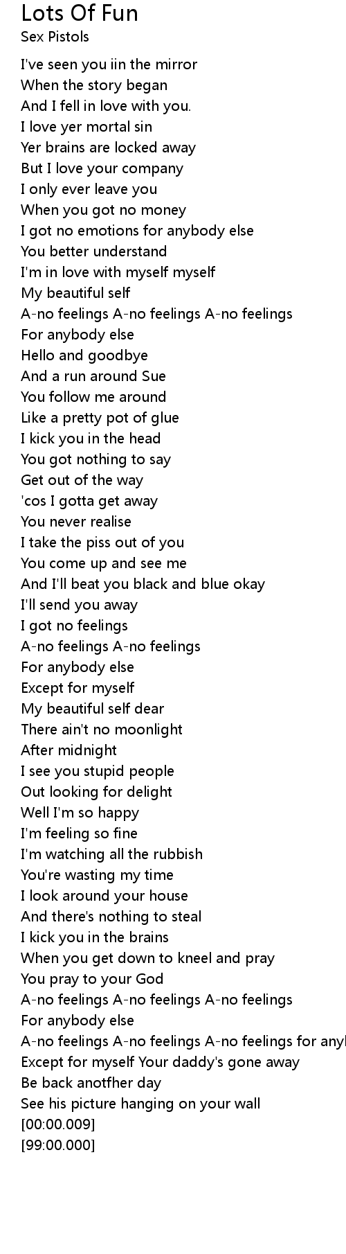 A-no feelings A-no feelings A-no feelings for anybody else |
