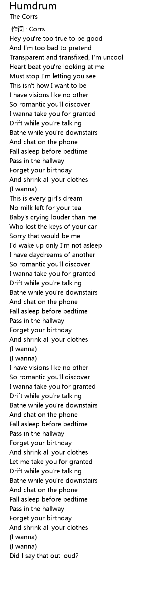 | [00:00.00] | 作词 : Corrs |