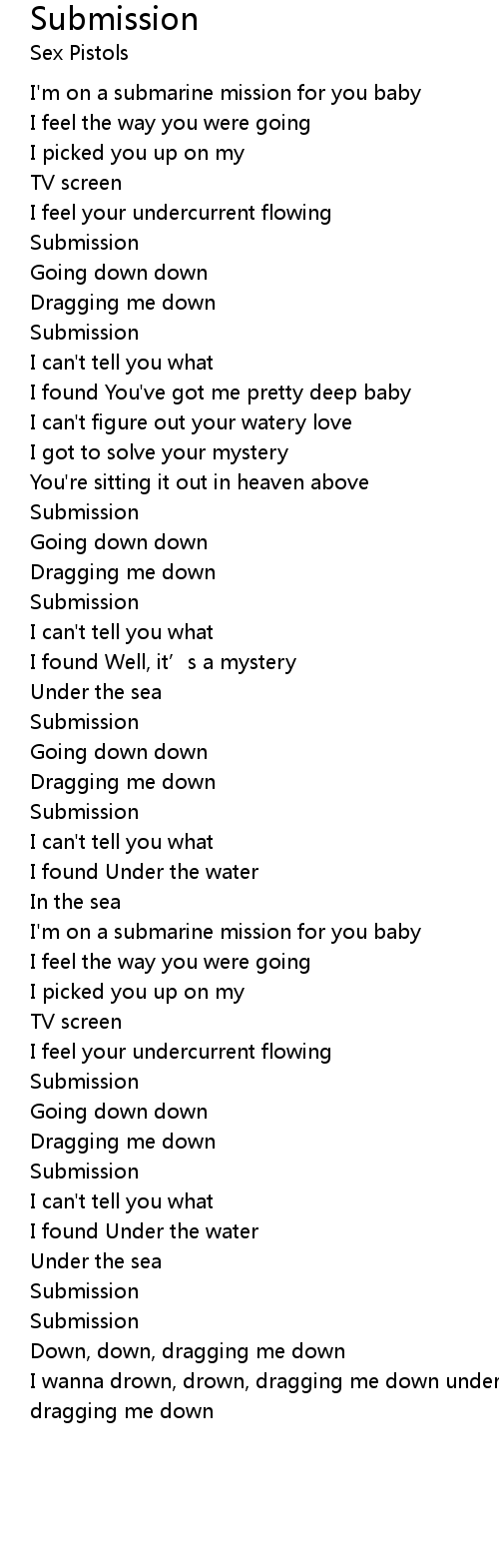 | I wanna drown, drown, dragging me down under the water under the sea down down dragging me down |