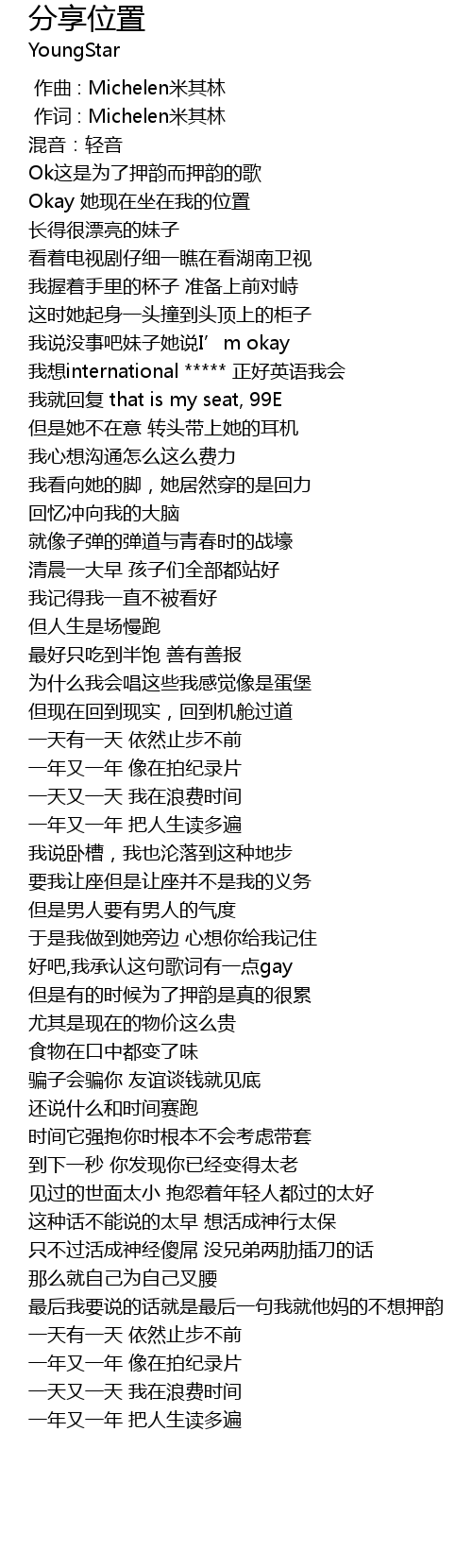 | [00:07.829] | Ok这是为了押韵而押韵的歌 |
