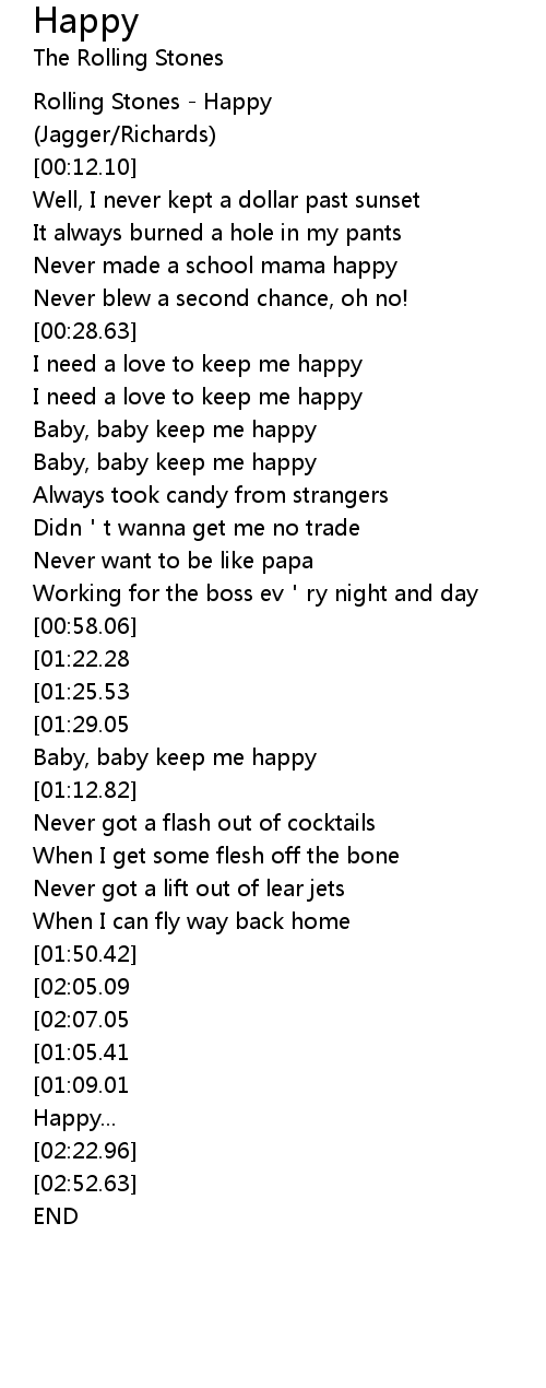 | [00:00.00] | Rolling Stones Happy |