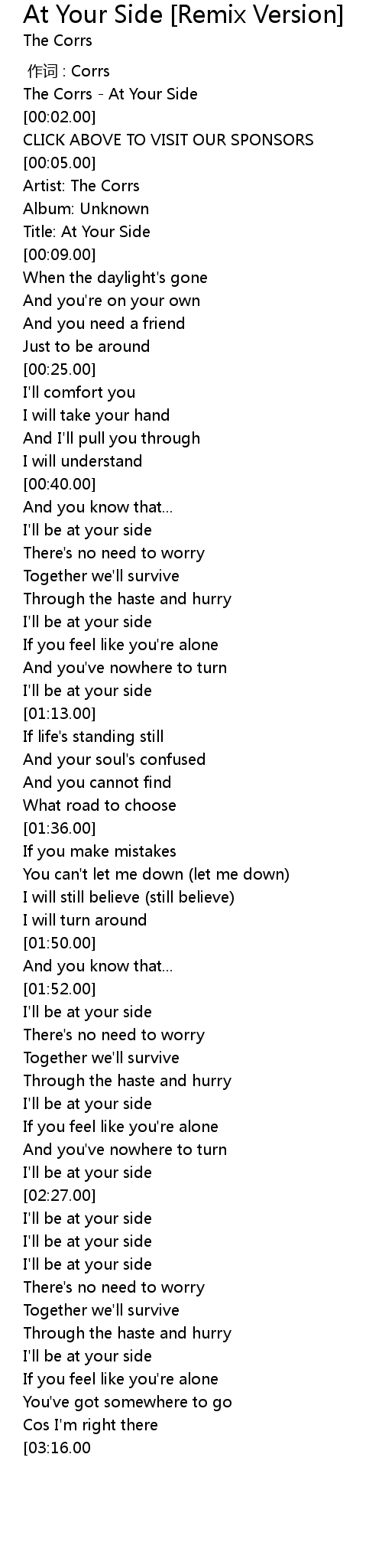 | [00:00.00] | The Corrs At Your Side |