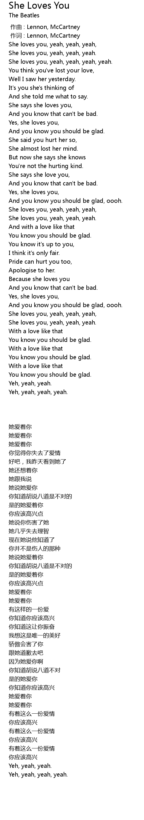 | [00:04.01] | She loves you, yeah, yeah, yeah. |