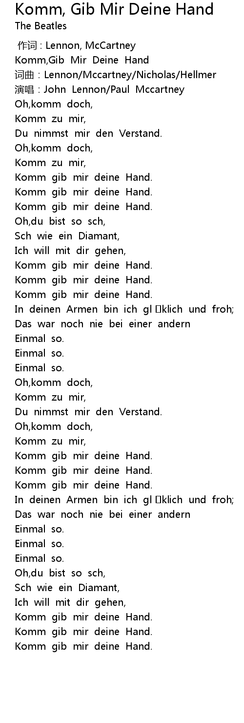 | [00:02.325] | Komm,Gib Mir Deine Hand |