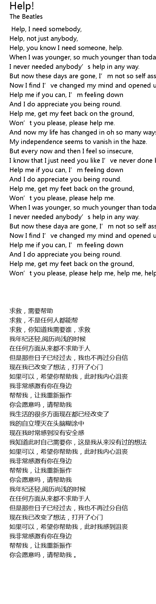 | [00:05.58] | Help, you know I need someone, help. |