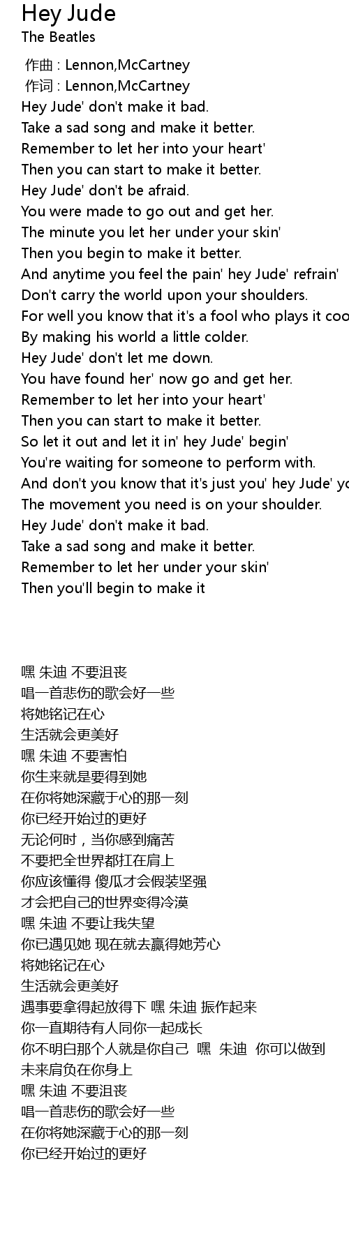 | [02:39.290] | Hey Jude' don' t make it bad. |