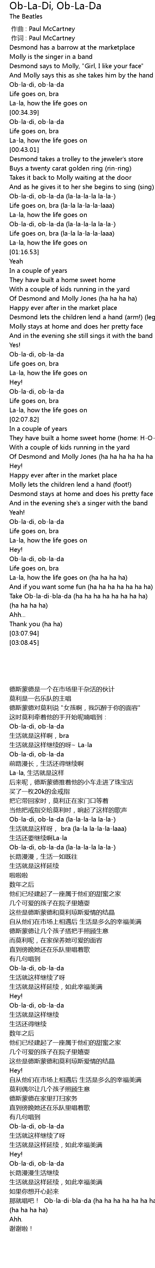 | [01:09.31] | Ob-la-di, ob-la-da (la-la-la-la la-la-) |