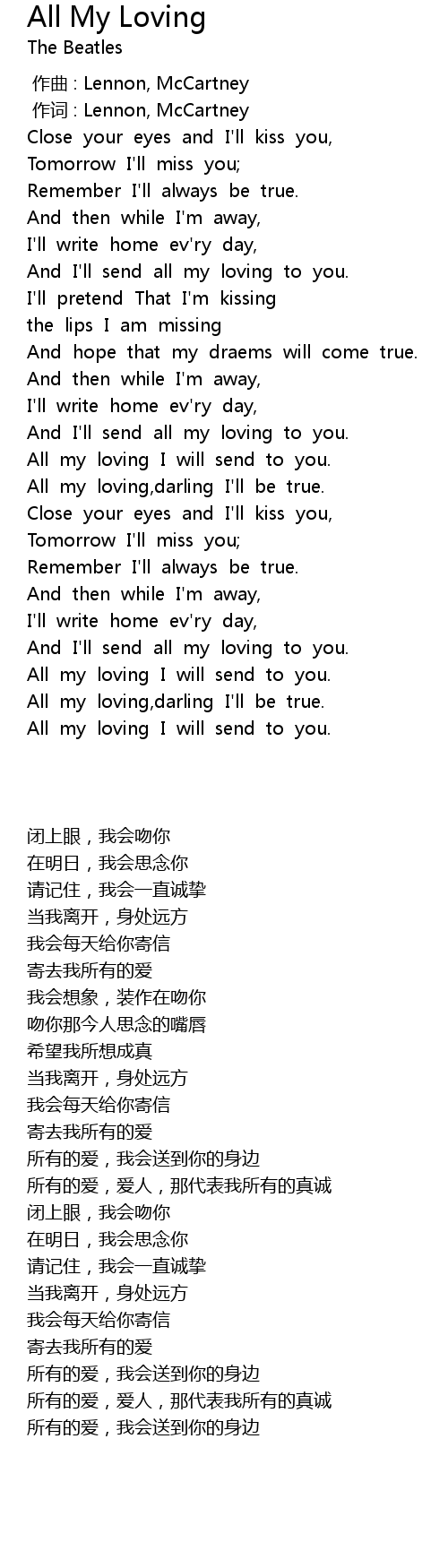 | [01:44.95] | All my loving,darling I'll be true. |