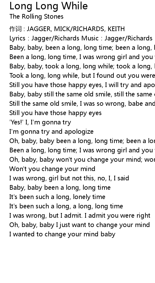 | Baby, baby, been a long, long time; been a long, long time; | |