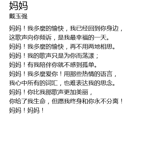 | 妈妈!你比我那歌声更加美丽, | |