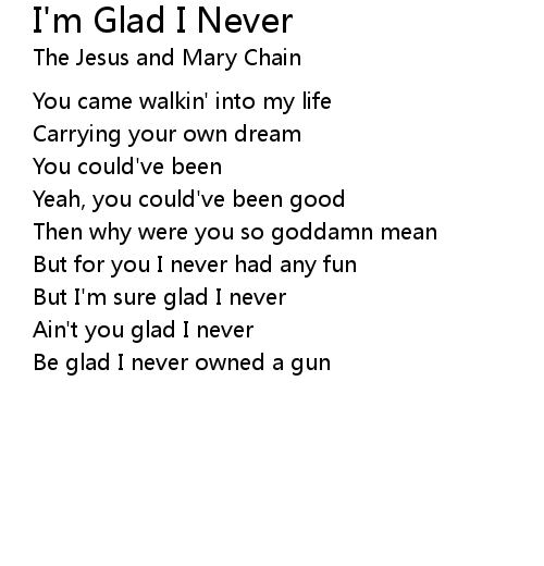| Ain't you glad I never | |