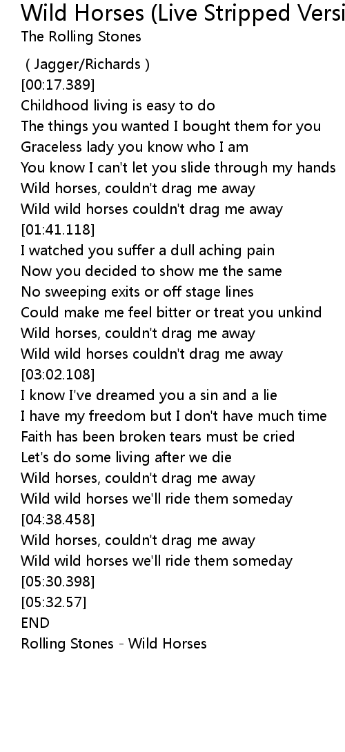 | [05:20.489] | Wild wild horses we' ll ride them someday |