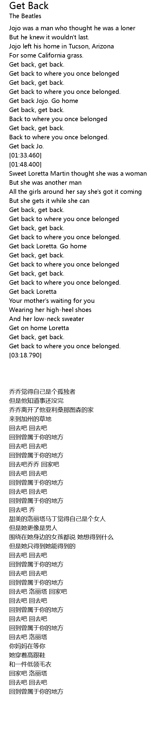 Get back to where you once belonged |