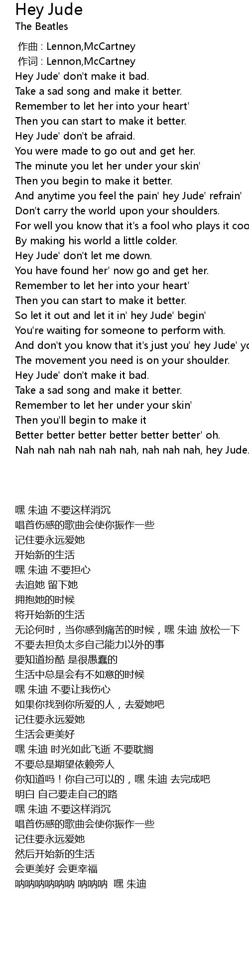 | [02:39.588] | Hey Jude' don' t make it bad. |