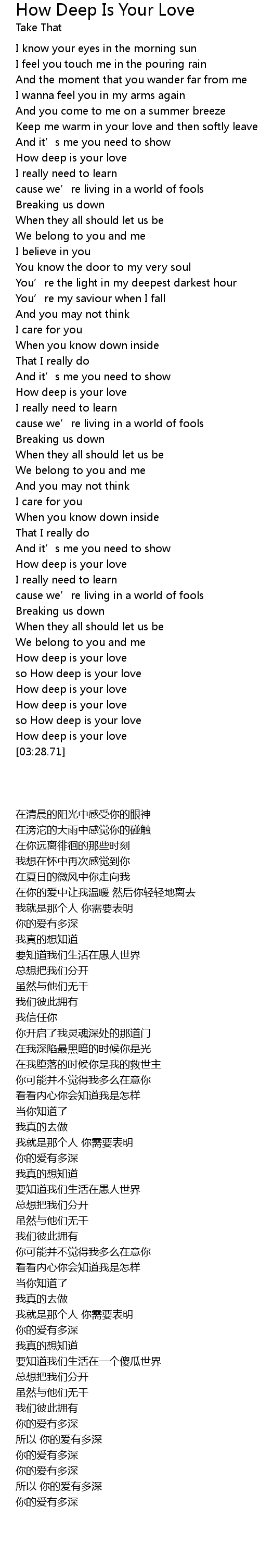 | [03:20.38] | so How deep is your love |