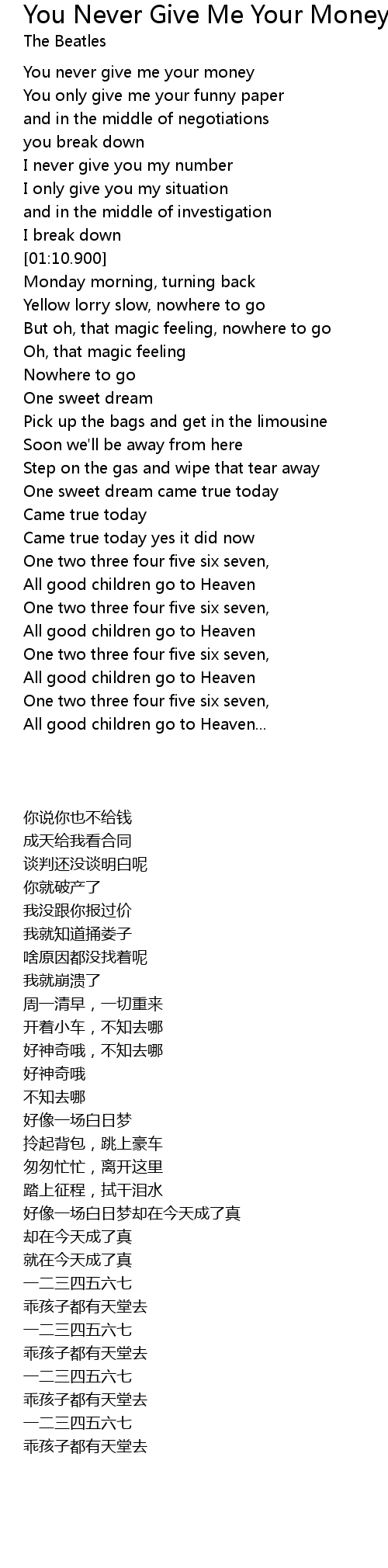 You never give me your money |