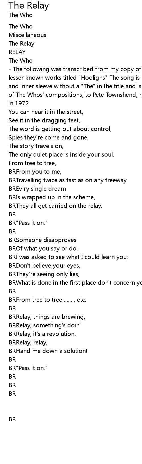 - The following was transcribed from my copy of a compilation of The Whos' |