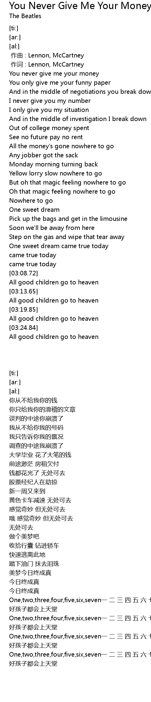 | [00:01.00] | zuo ci : Lennon, McCartney |
