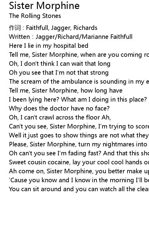 | Tell me, Sister Morphine, how long have | |