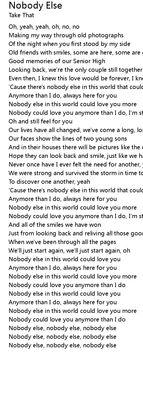 | Nobody could love you anymore than I do, I'm still here for you | |