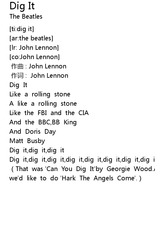 | [00:40.56] | Dig it, dig it, dig it, dig it, dig it, dig it, dig it, dig it |
