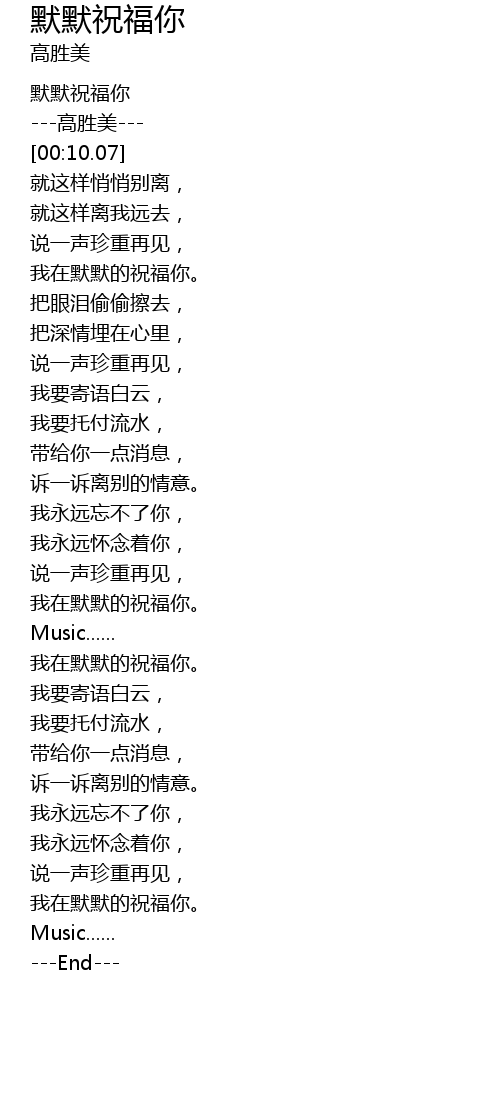 | [00:01.16] | 默默祝福你 |