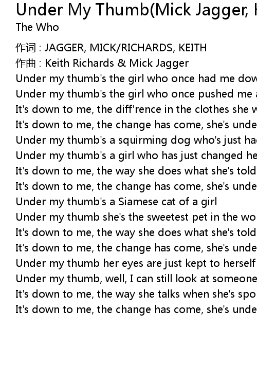 | Song | Under My Thumb(Mick Jagger, Keith Richards) |