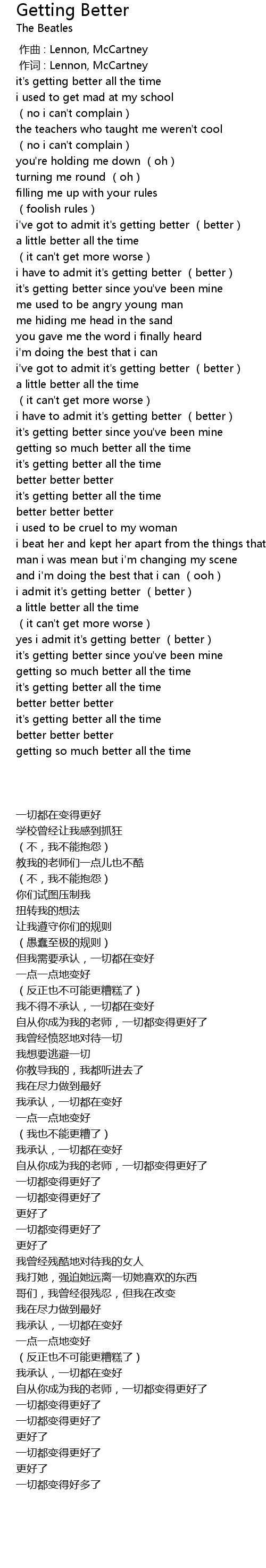 | [00:36.190] | it' s getting better since you' ve been mine |