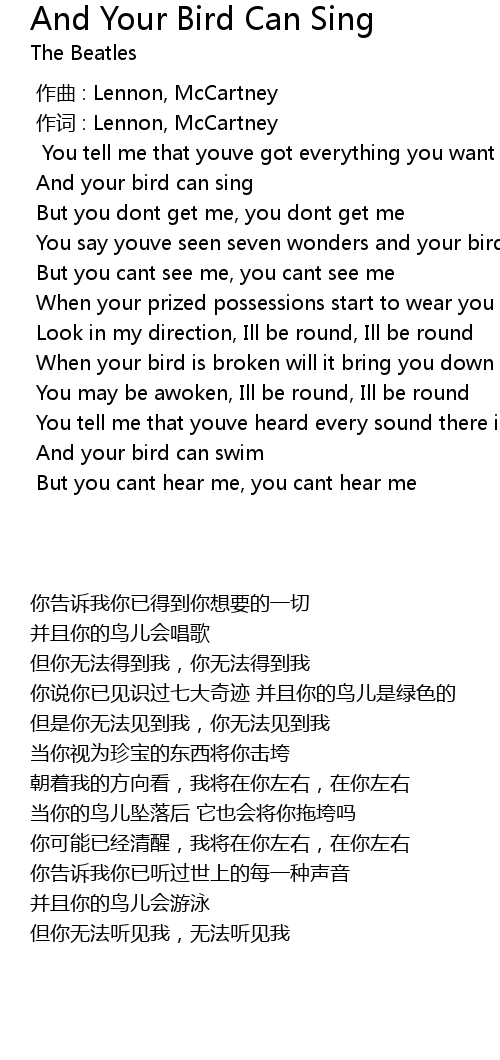 | [00:10.0] | And your bird can sing |