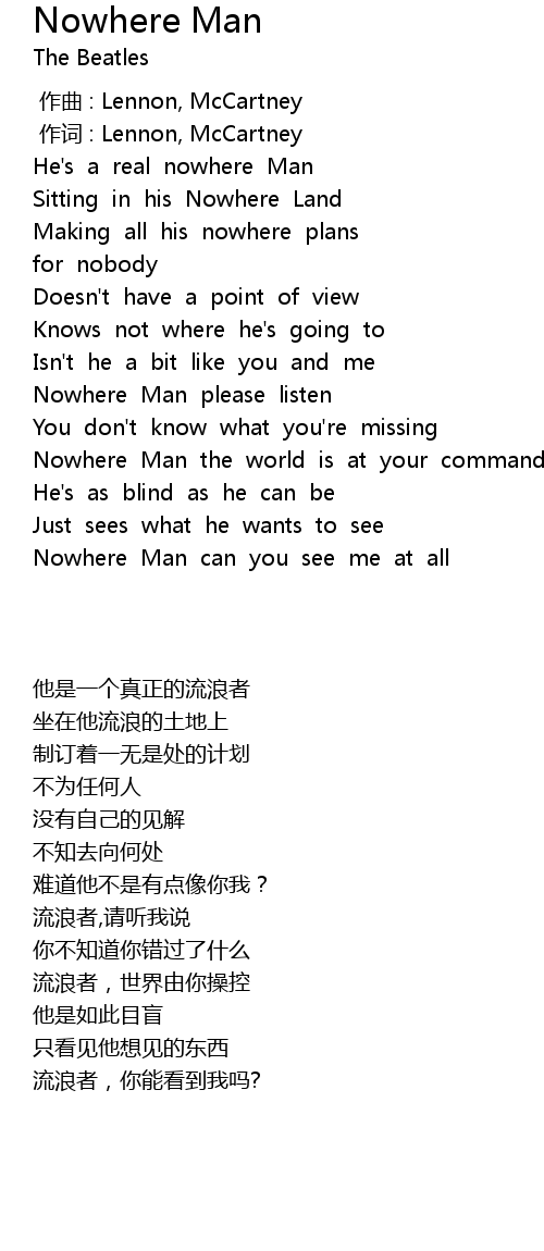 | [01:12.374] | Nowhere Man can you see me at all |