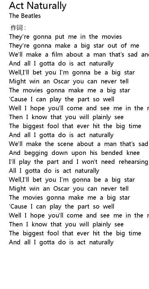 | [02:15.428] | And all I gotta do is act naturally |