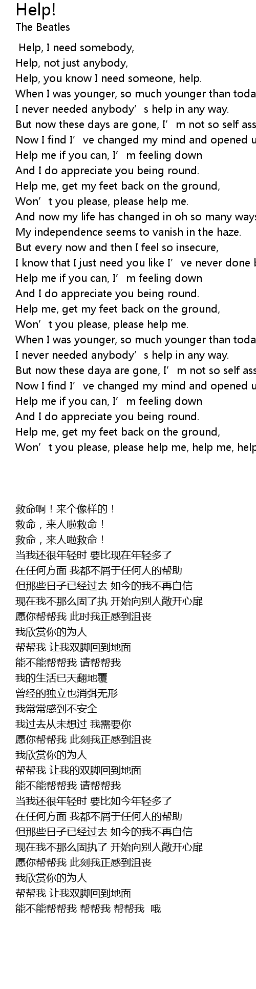 | [00:48.109] | Help me if you can, I' m feeling down |