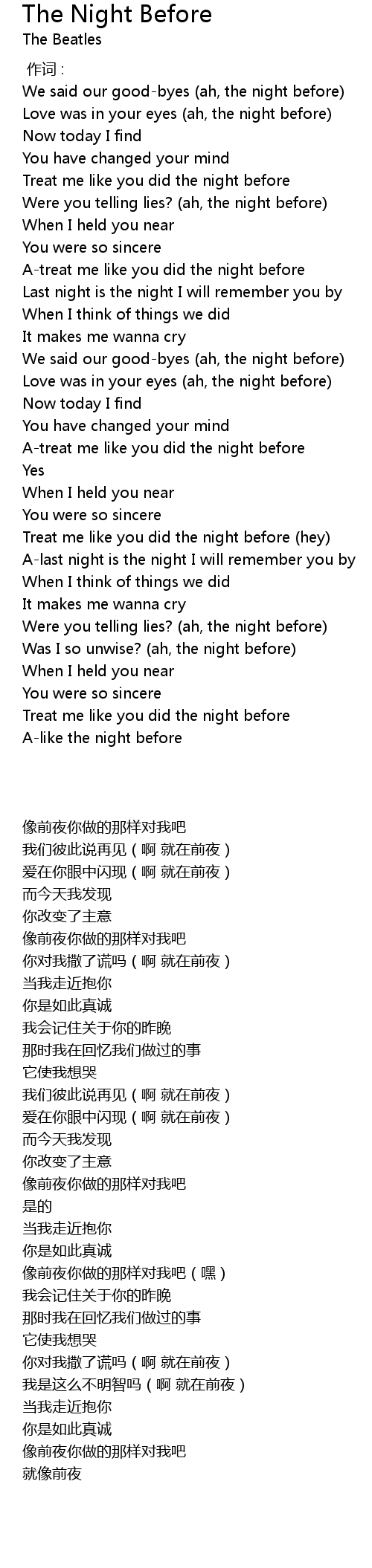 | [00:33.99] | Were you telling lies? (ah, the night before) |