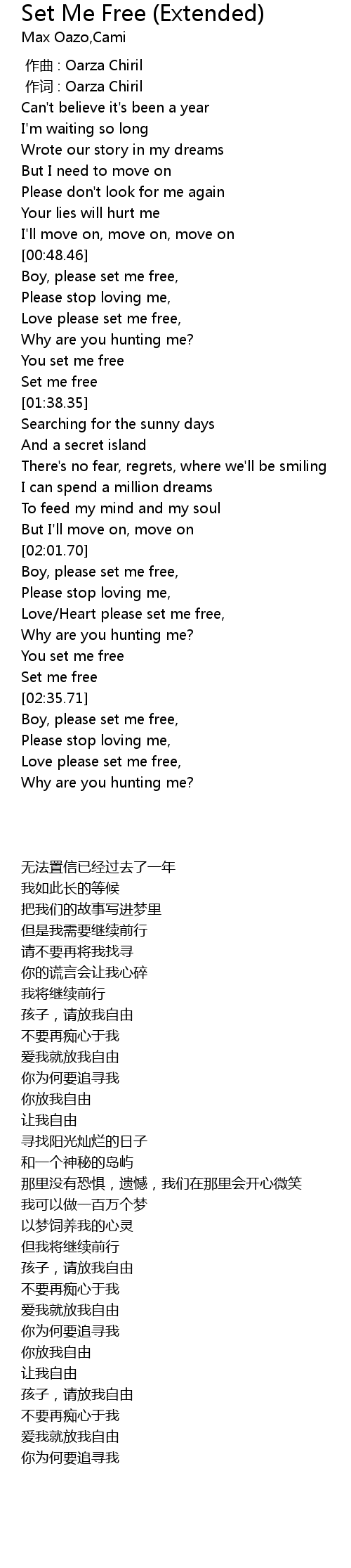 | [02:34.41] | Set me free |