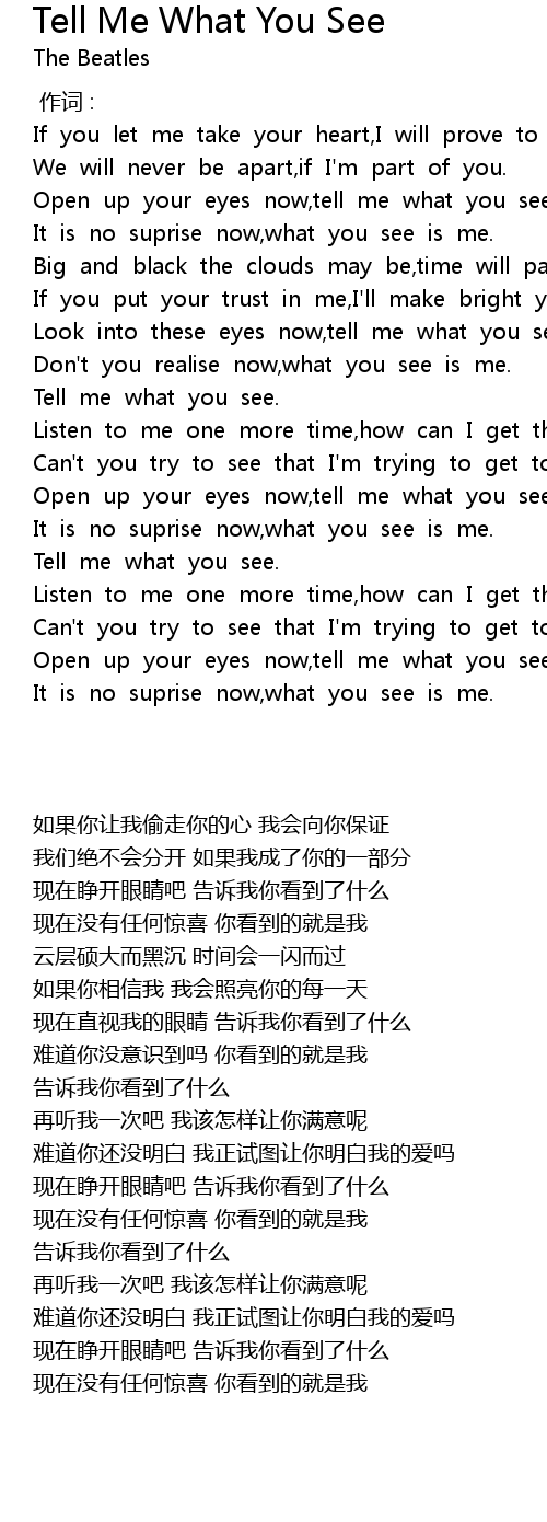 | [00:17.985] | Open up your eyes now, tell me what you see. |
