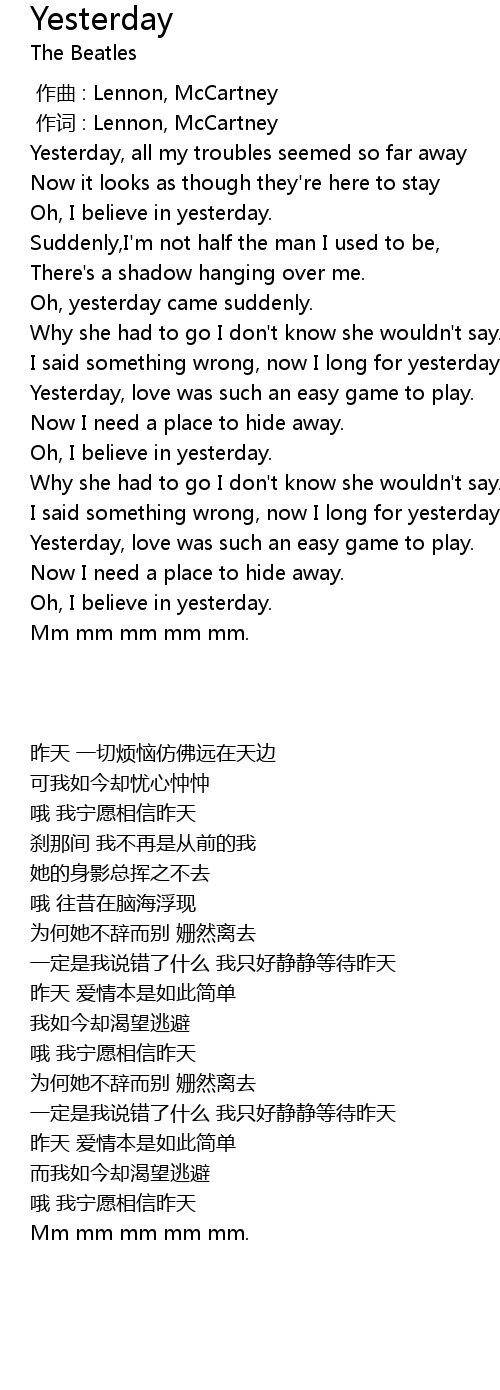 | [00:01.00] | 作词 : Lennon, McCartney |