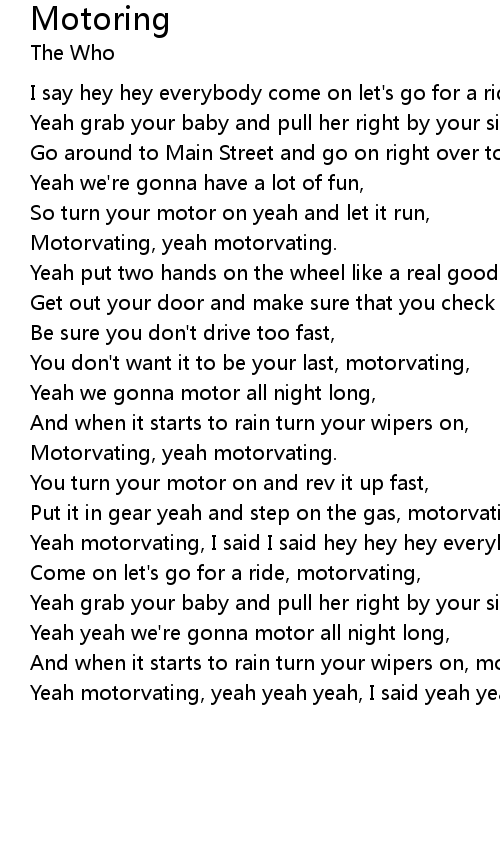 Yeah motorvating, yeah yeah yeah, I said yeah yeah, motorvating. |