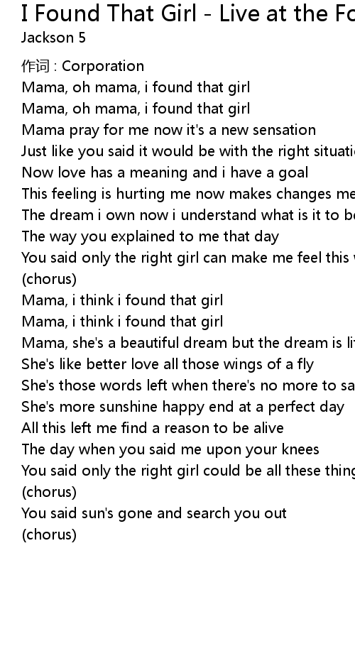 | Mama, oh mama, i found that girl | |