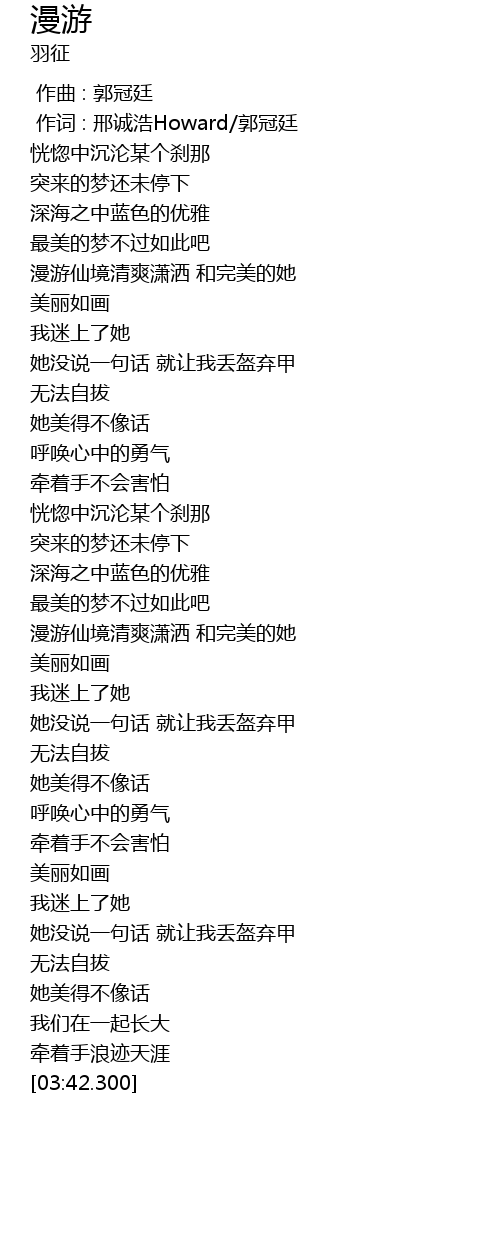 | [03:35.820] | 牵着手浪迹天涯 |