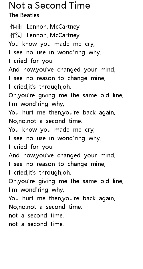 | Song | Not a Second Time |