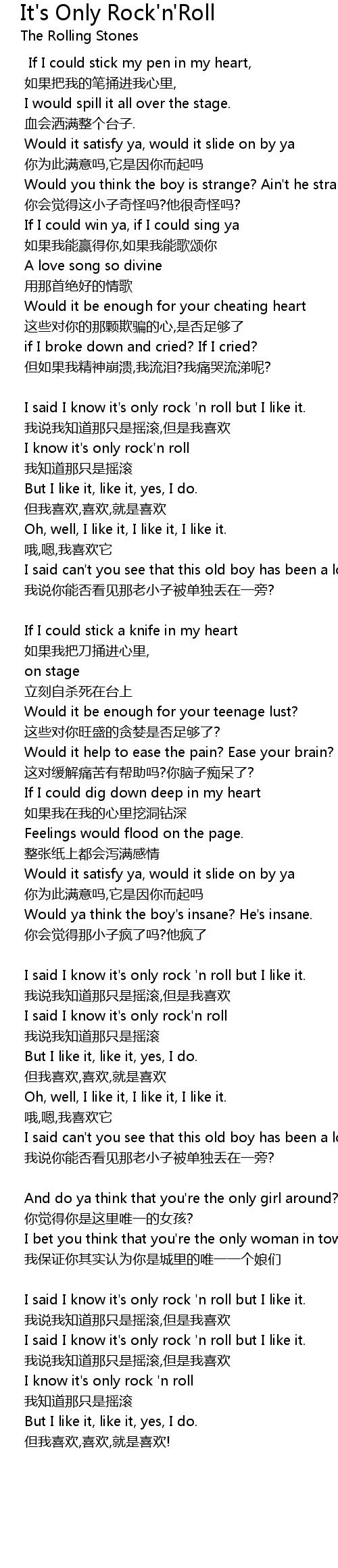 | 我说我知道那只是摇滚,但是我喜欢 | |