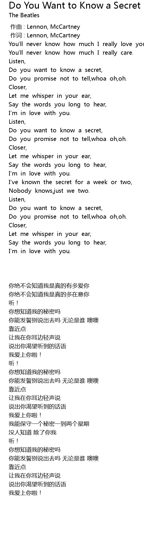 | [00:48.192] | Do you promise not to tell,whoa oh,oh. |