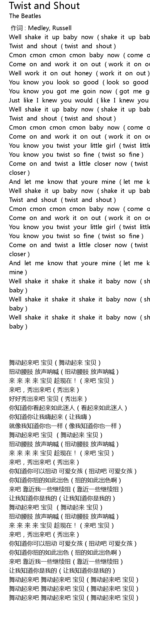 | [00:59.528] | Come on and twist a little closer now twist a little closer |